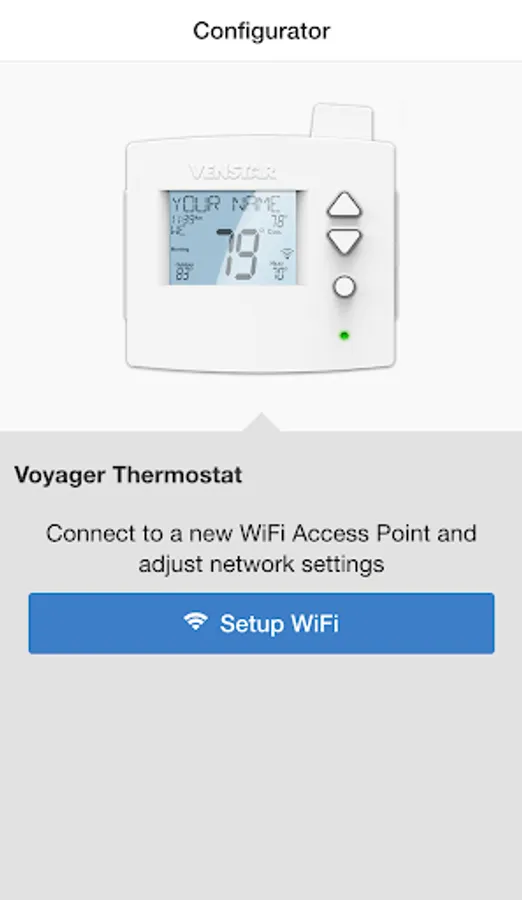 The Venstar Configurator App allows users to easily setup and configure Wi-Fi settings for the Venstar Explorer line of thermostats and sensors.