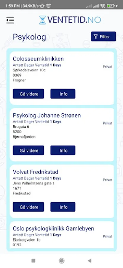 Ventetid.no gives you an overview of the expected waiting time at various health factors