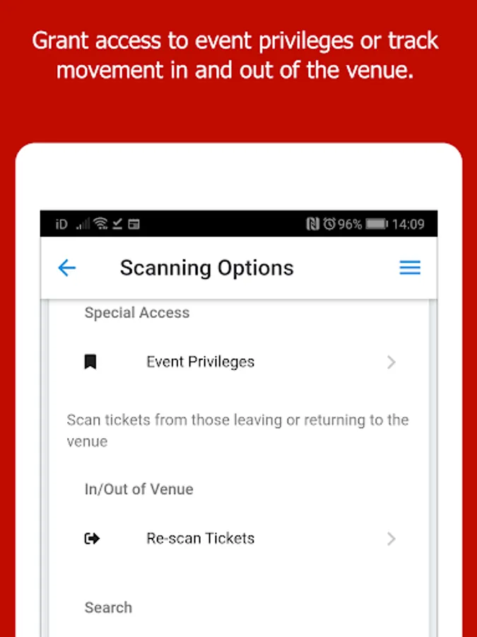 The tickets can also be scanned on exit and re-entry. They can also be scanned to redeem or gain access to an event's privileges, perks, etc.