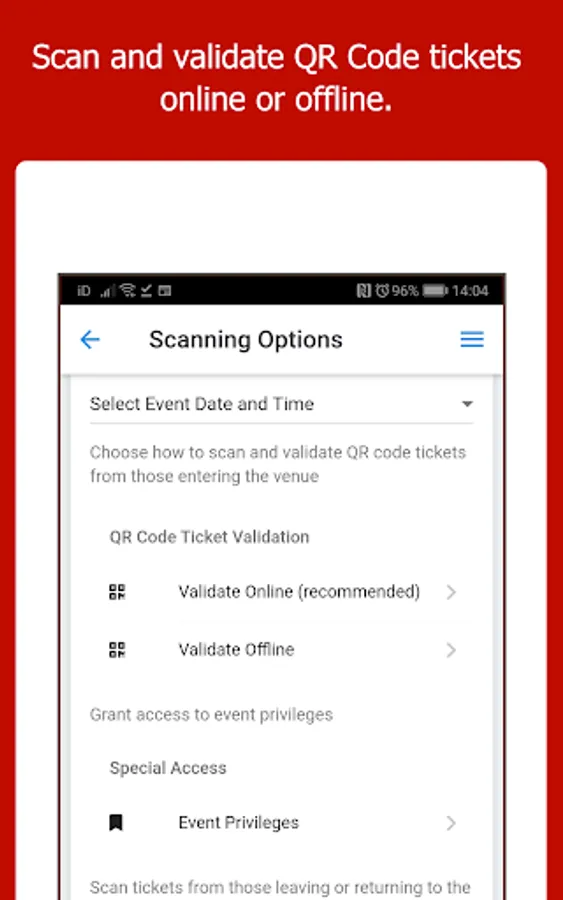 Event organizers who have created events on the ticketing.events platform can use this app to scan and validate QR Code tickets attendees have reserved.