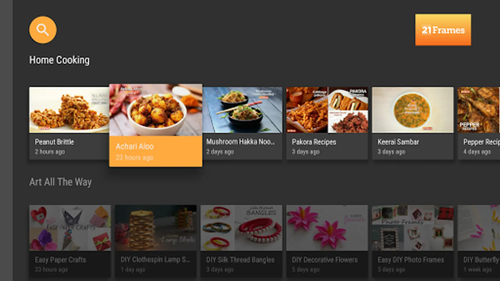 21Frames app picks up best shows and videos available on Ventuno Platform. User can enjoy unlimited categories of HD videos made by experts in the industry.