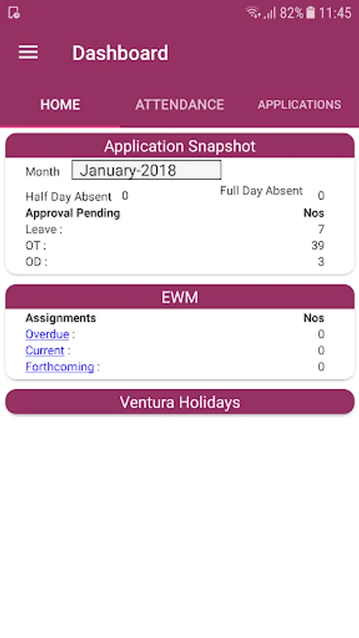 Ventura HRMS application is specially designed for Ventura (www.ventura1.com) employees. This application provides employees Attendance, EWM and other details where employees can apply applications like OD , OT and Leave.