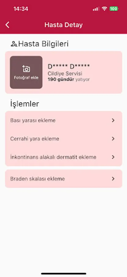 Recording the wounds (Pressure, Surgery, etc.) of long-term hospitalized patients in clinics with visual and technical information and following them by working integrated with the HIMS application.