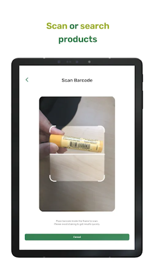 - Use our barcode scanner or search by product keyword to shop sustainably