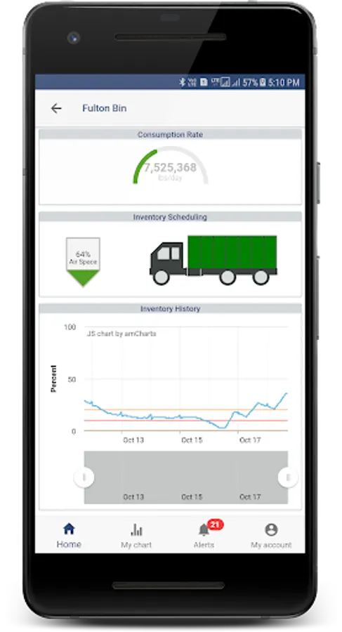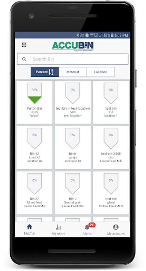 Track your inventory and stay in control from almost anywhere with the AccuBin Mobile App. Manage inventory securely while in the office or on the go with your desktop computer or mobile device. AccuBin remote inventory system provides many features including accurate and repeatable weight readings, time to empty and consumption rates for each bin on demand.