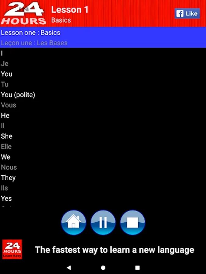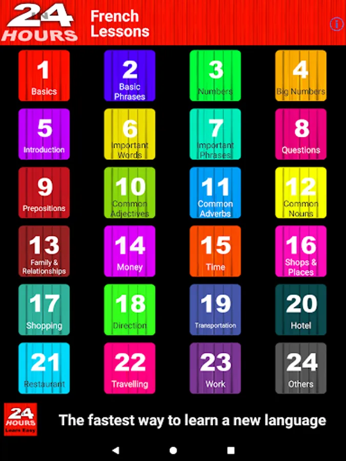 Whether you are an academic student, tourist, explorer, adventurer or businessman, this app will make sure you speak French in 24 hours!