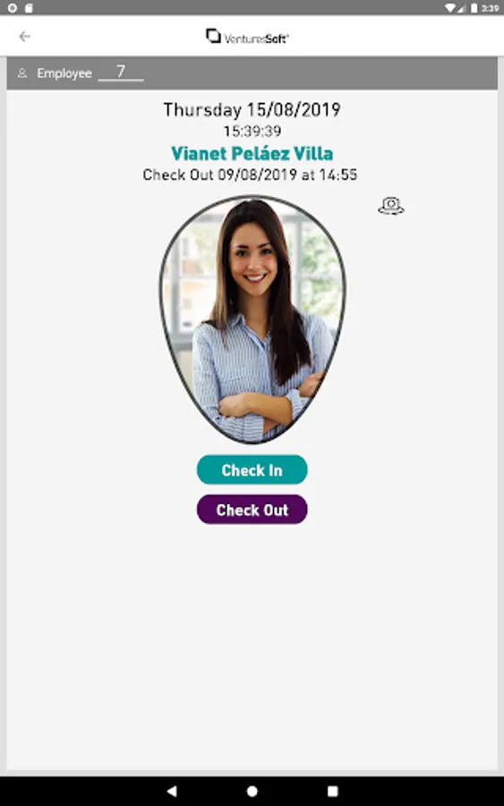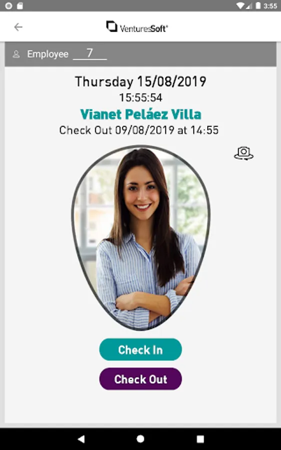 • The check in and check out times are updated immediately in the database to later execute the analysis related with Time & Attendance