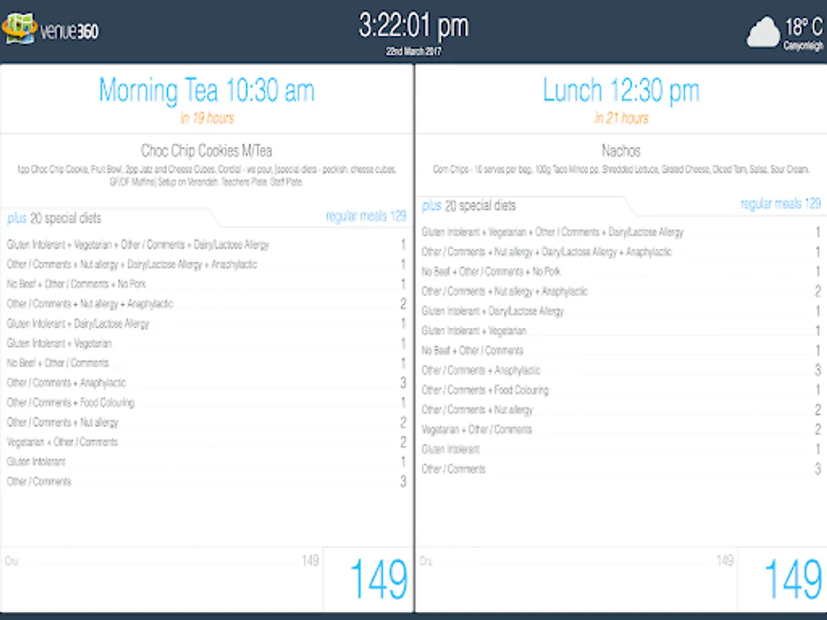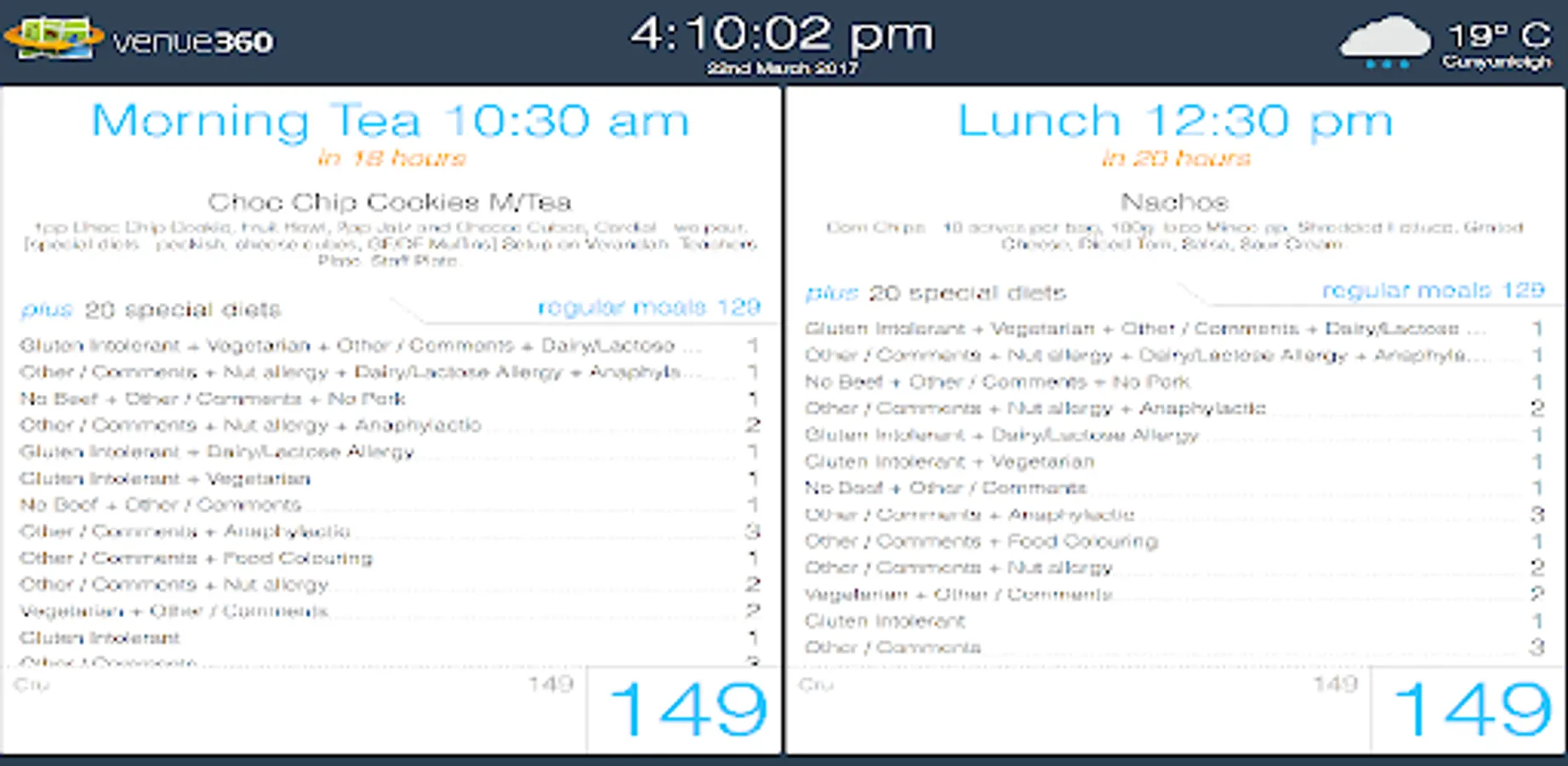 Turn your device into a venue360 smartScreen. SmartScreens display crucial information in real-time. When someone changes something in venue360, see that change immediately updated on all smartScreens. No need to print paper copies and guess if the information is still current.