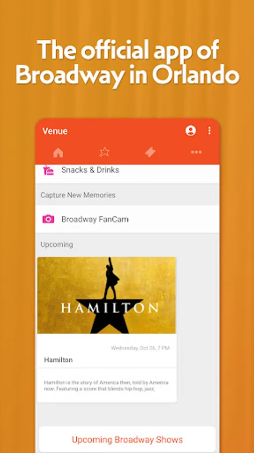 Broadway in Orlando is proud to announce a new app! With the aid of the app, fans may now connect their Ticketmaster account for mobile entry. In additional to accessing to your Broadway in Orlando tickets, the app provides information and news to make your visit to the theatre easier and more enjoyable.