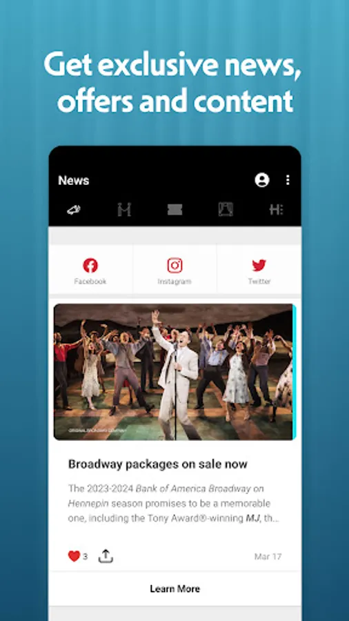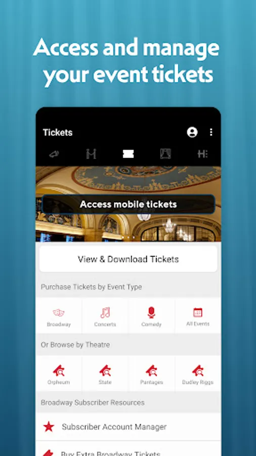 Hennepin Theatre Trust and Broadway Across America are proud to announce a new mobile app! With the aid of the app, fans may now connect their Ticketmaster and/or their Broadway on Hennepin subscriber account to access their mobile tickets for entry into shows at the Orpheum, State, and Pantages Theatres. In addition to providing access to your tickets in one place, the app provides links and information to help make your visit to the theatre easier and more enjoyable.