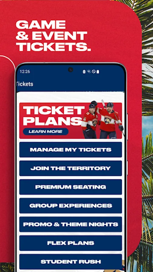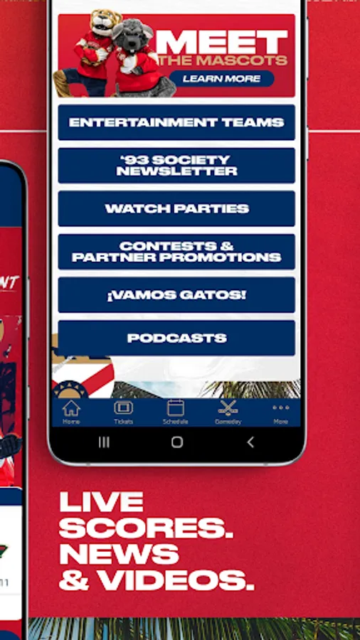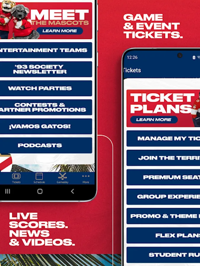 Download the Official Florida Panthers App to take your game and live event experience to another level. Purchase and access tickets, manage your mobile wallet and stay up to date on the latest offerings and promotions. Whether you’re watching the Panthers from the stands or the couch, fire up this app to keep track of the team with real-time scoring and stat updates, articles, videos and more. Attending a game, concert or other live event? This app is your perfect companion when it comes to ticketing, mobile ordering, parking and important day-of-event resources as users are able to easily toggle between separate views for the Panthers and Venue Events.
