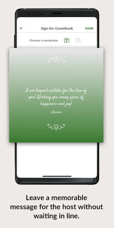 Sign A Digital Guestbook: Signing the guestbook just got easier! Tap the “Sign guestbook” button to leave a message for the hosts of the event.