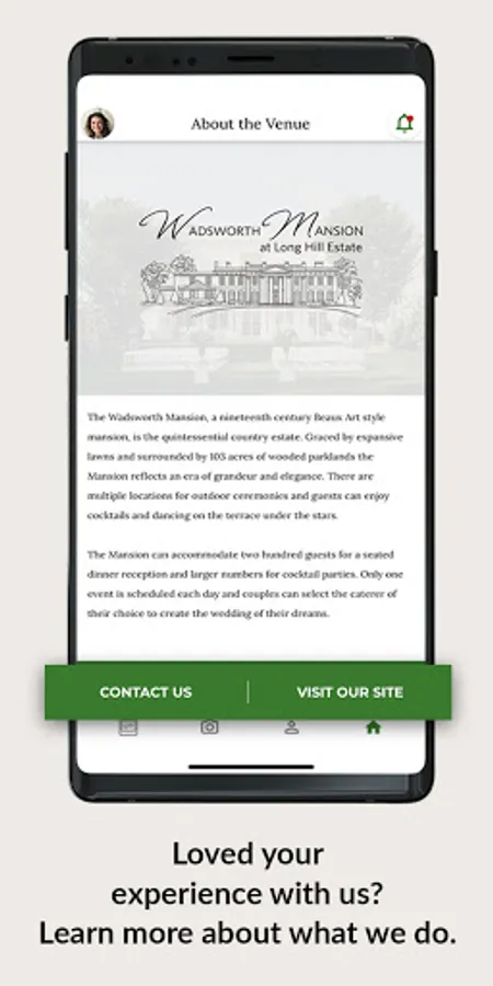 Learn More About the Wadsworth Mansion: Love what we do? Tap the home icon in the app to learn more and contact us for details about hosting your next event.