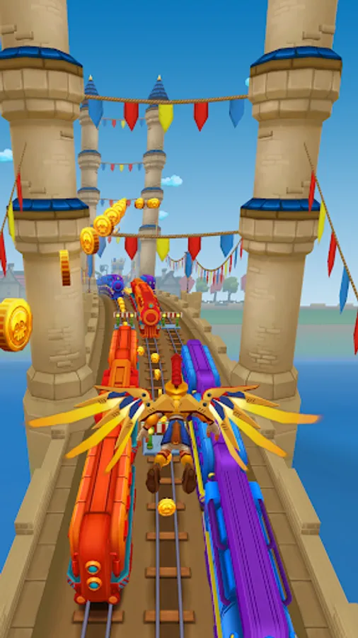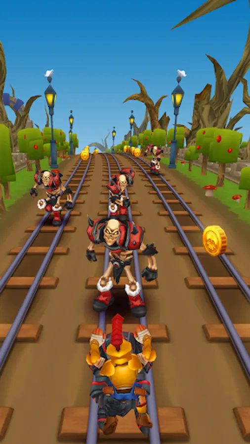 Dodge oncoming steam powered hover trains and mine carts and dash through the train tracks as quickly as you can to collect coins and power ups!