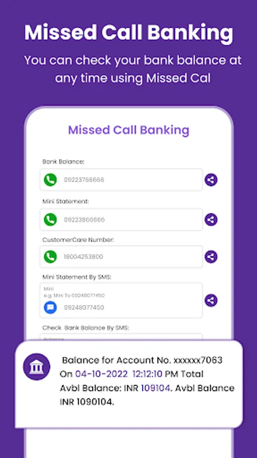 Bank balance inquiry and get a mini statement from your bank by giving a missed call.