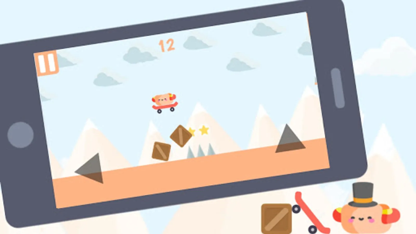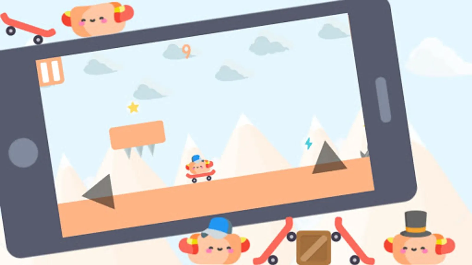 Try to help the Hotdog with his stakeboard to escape from the hard obstacles.