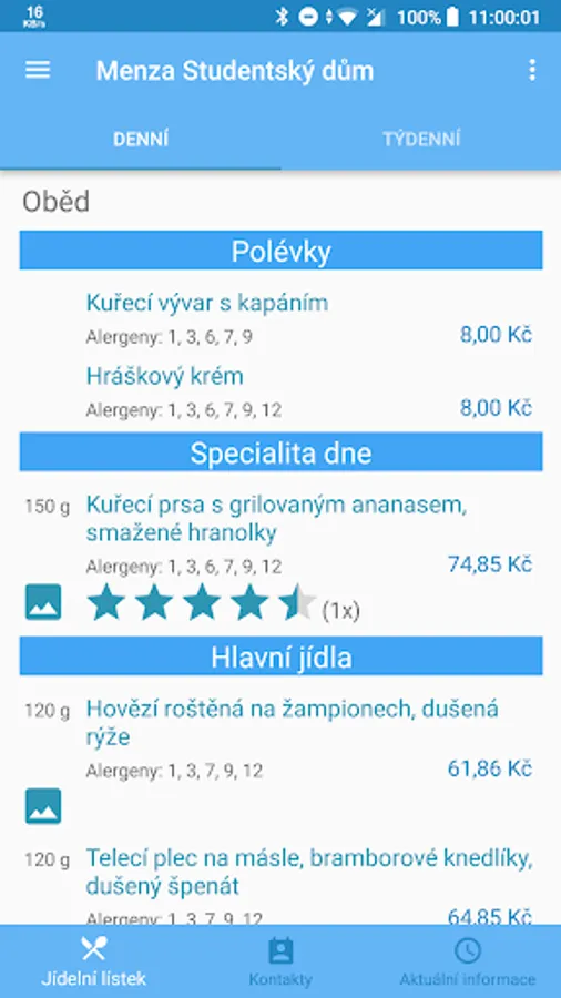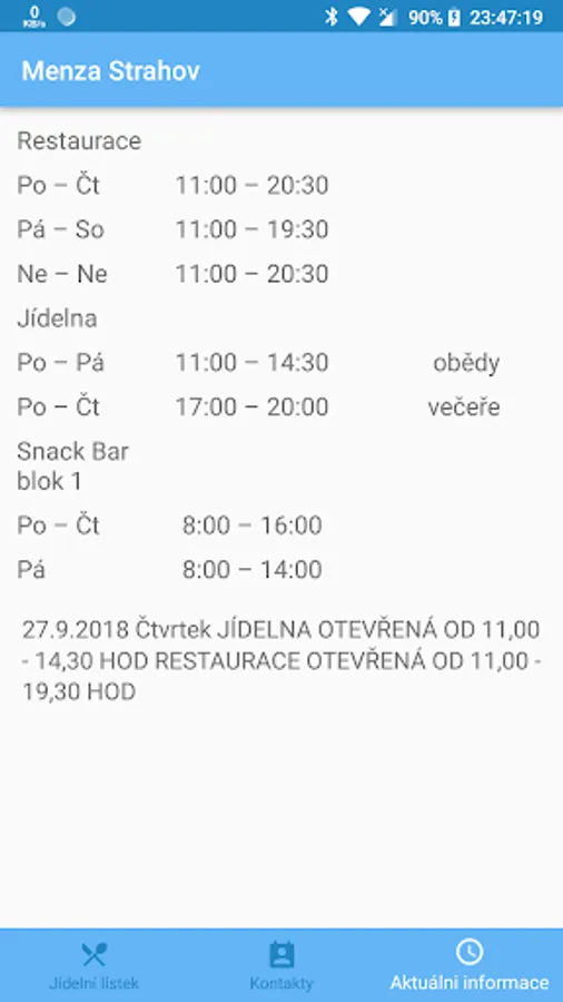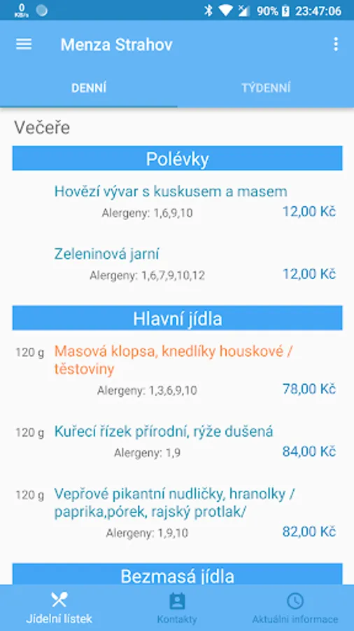 The application of the Menza CTU offers complete information about Menz ČVUT canteens and meals.