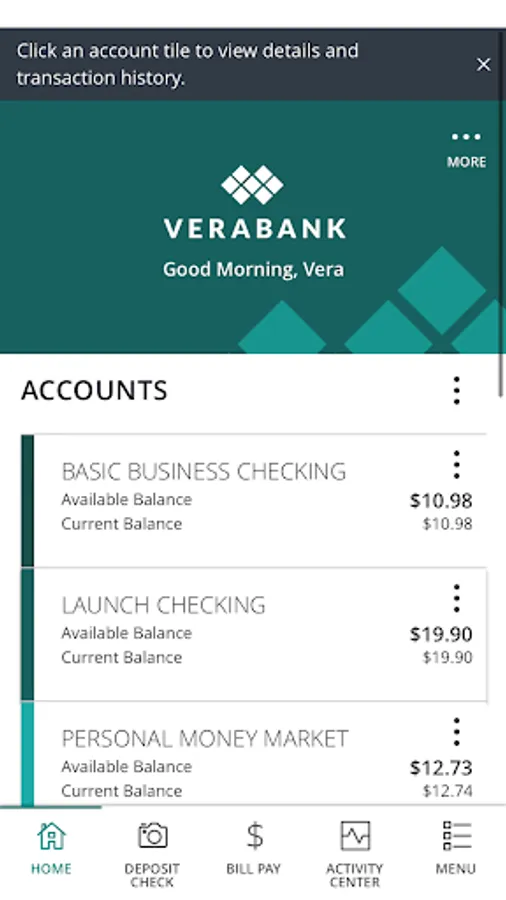 · View your VeraBank and non-VeraBank accounts all in one place
