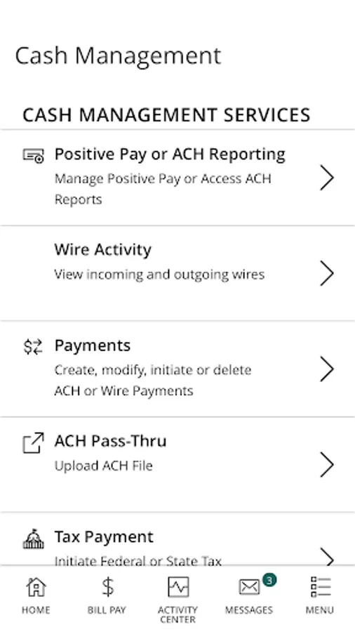 · Manage Positive Pay and other Security Features