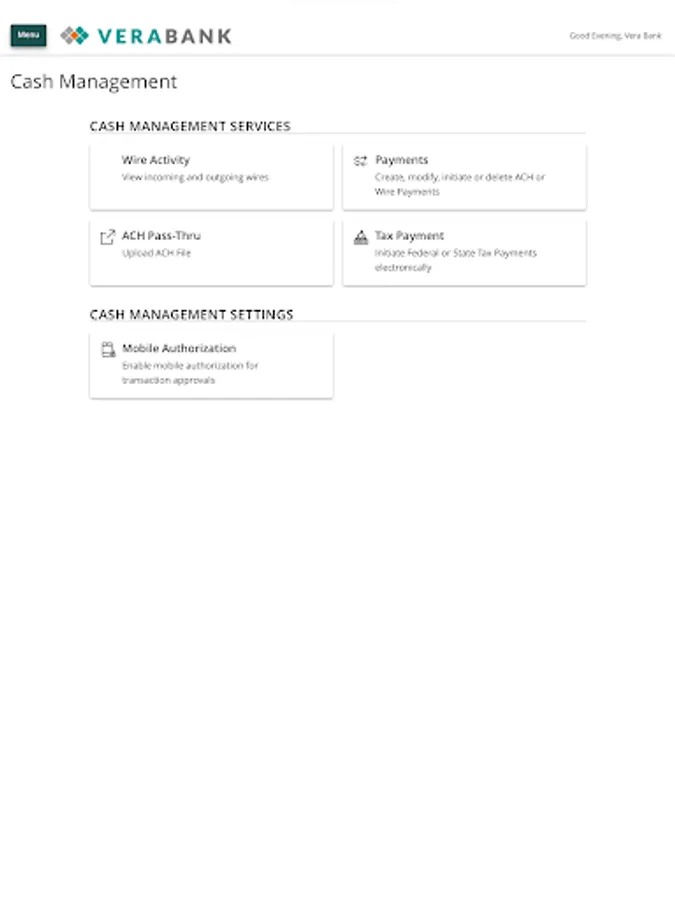 · Transfers between your VeraBank accounts