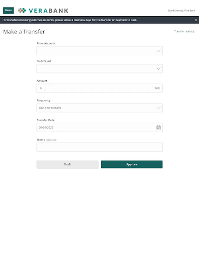 · Transfers to and from non-VeraBank accounts