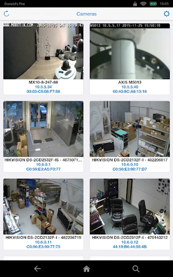 5) The camera list refreshes automatically every 10 secs, but you can force a refresh by tapping the refresh icon in the top-bar.