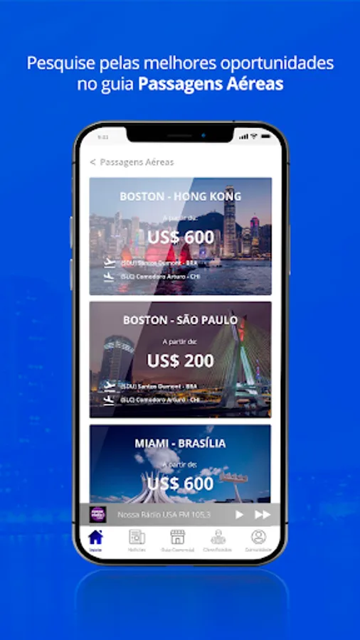 - Push notifications sent to your cell phone in real time, such as dollar quotes, flight promotions and others