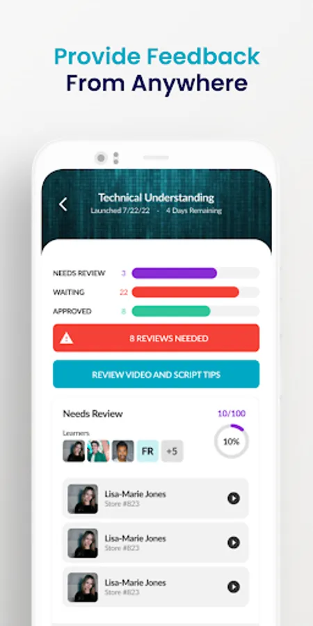 Mobile training platform that distributes pre-produced video content and allows for the creation of real-time training content. Features include video roleplay, instant management feedback, content creation tool and internal communication features that make corporate or higher education feel social in nature. Corporate training meets Tik Tok, designed to be hyper efficient for management and employees on the go.
