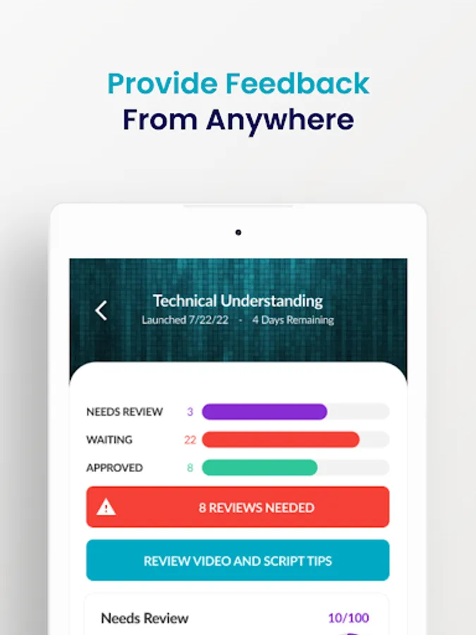 Mobile training platform that distributes video content and allows for the creation of real-time training. Features include video roleplay, instant management feedback, content creation tool and internal communication features that make learning on-the-go more social and engaging.