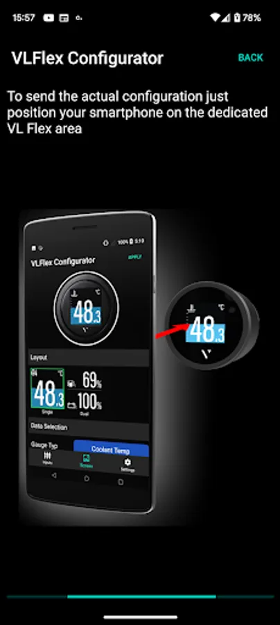 Launch the App and define your settings through the user-friendly interface, then simply hold your mobile device in proximity of the VL Flex device to transfer the configuration.