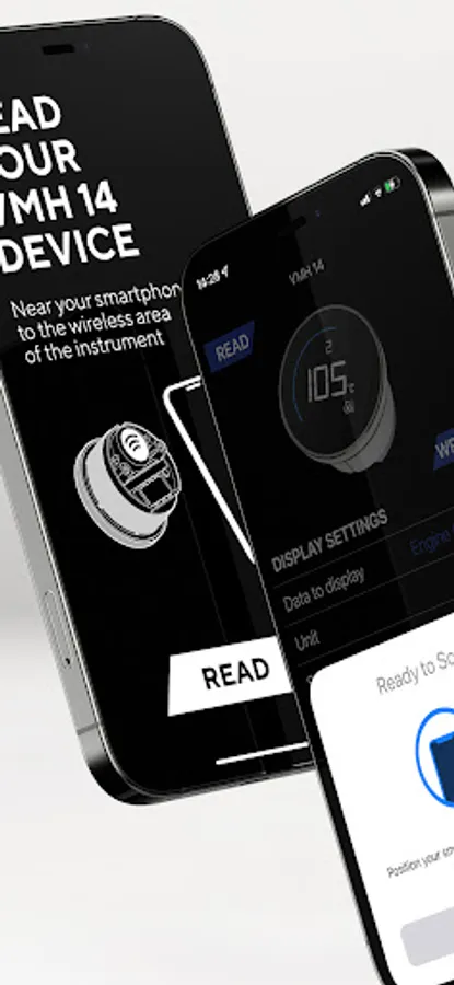 Launch the App, define your settings, and then simply hold your mobile device in proximity of the VMH 14 device to transfer the configuration.