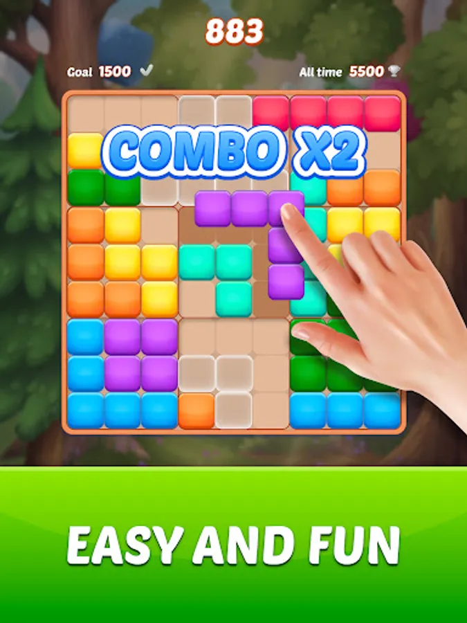 Block Puzzle is a game you certainly know how to play: build a vertical or horizontal row of blocks to eliminate it. When you build a 3x3 field of blocks, they disappear too. Blast two or more rows at once to get more game points and make combos.