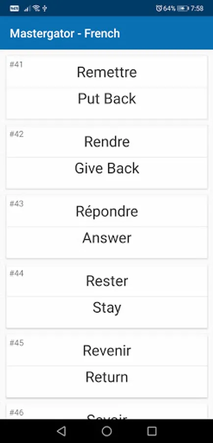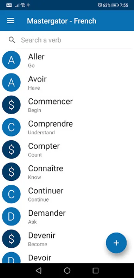 Mastergator offers you about around sixty verbs in French, in five tenses, among the different existing forms.