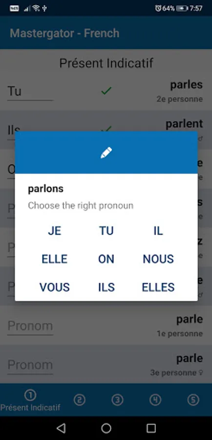 Mastergator is an app that allows you to consolidate your knowledge in French conjugation.