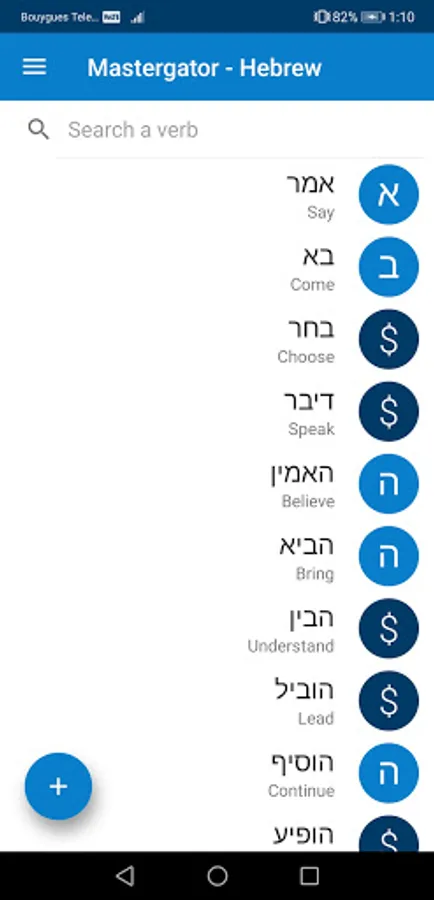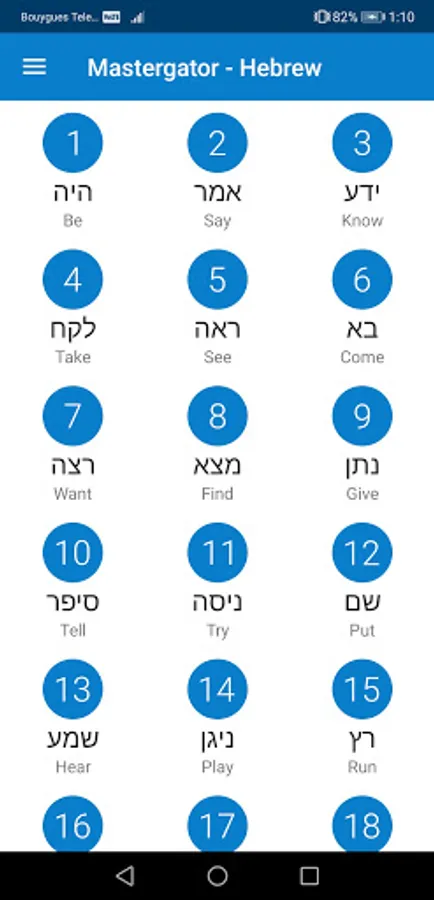 Mastergator offers you about around 130 verbs in Hebrew, in four tenses, among the different existing forms.