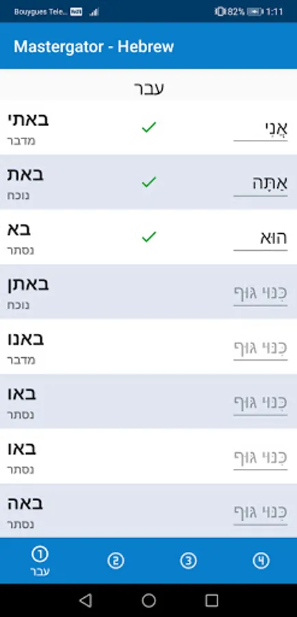 Mastergator is an application that allows you to consolidate your knowledge in Hebrew conjugation.