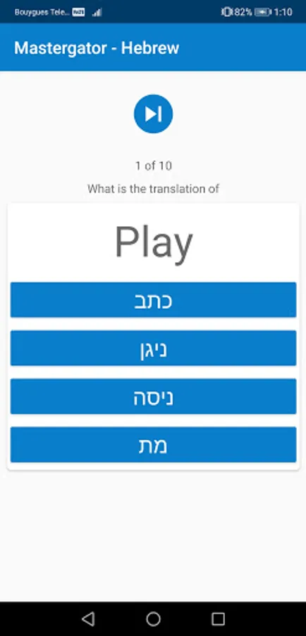 - Quiz, where you will have to translate a series of Hebrew words into your language