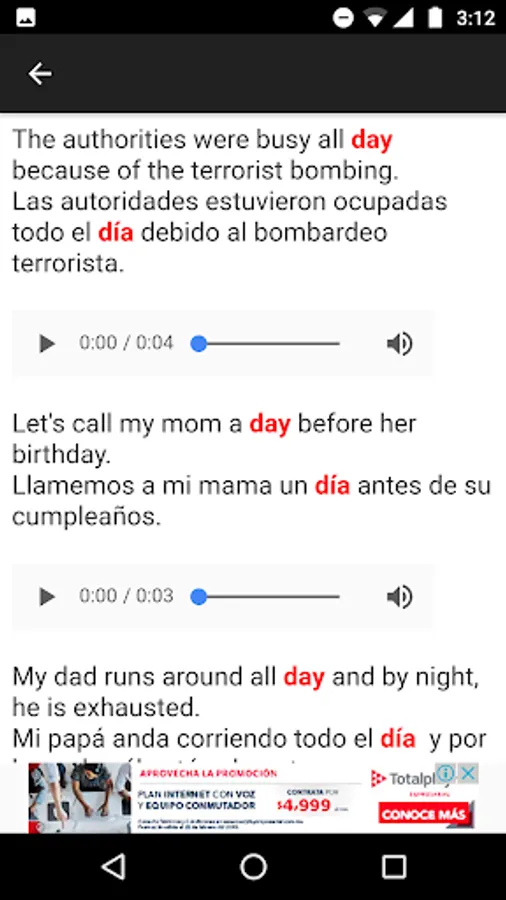 The APP delivers 11 sentences designed to teach the individual use of a certain word in the different ways you can use any of the words in the list of core vocabulary. Each sentence has a recording high-quality audio that can help you with the pronunciation of these sentences shows.
