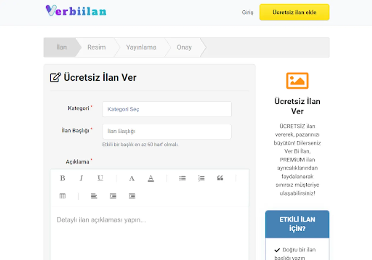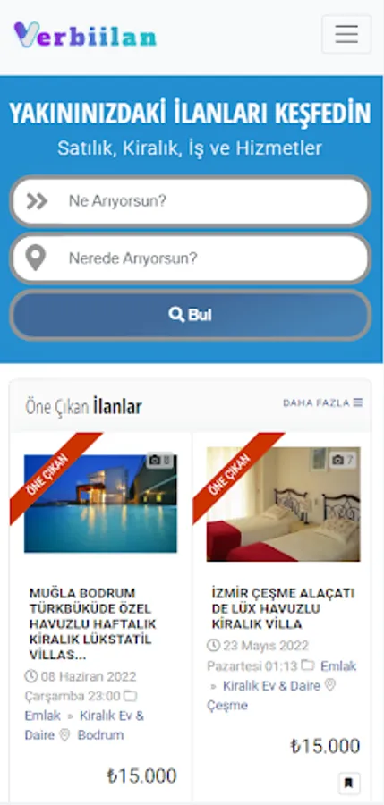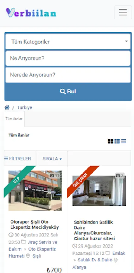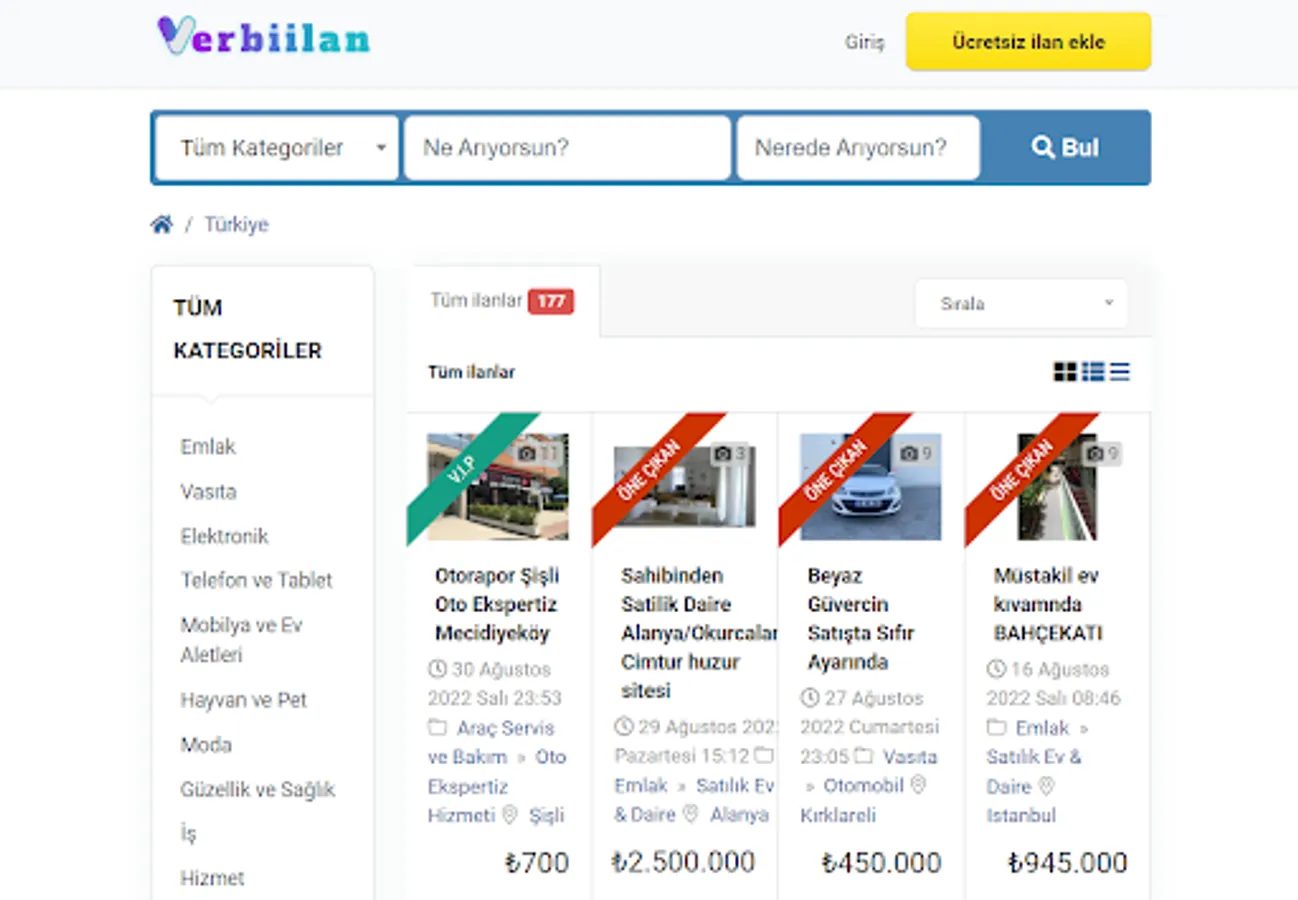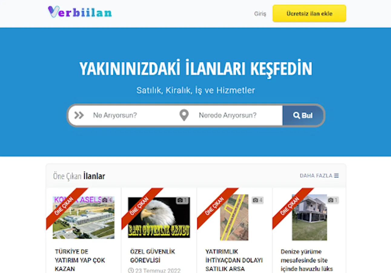 Verbiilan is an online shopping and advertisement platform where advertisements and e-commerce transactions are made in many categories such as apartments for sale and rent, new and used cars, shopping products, job postings, service announcements and spare parts.