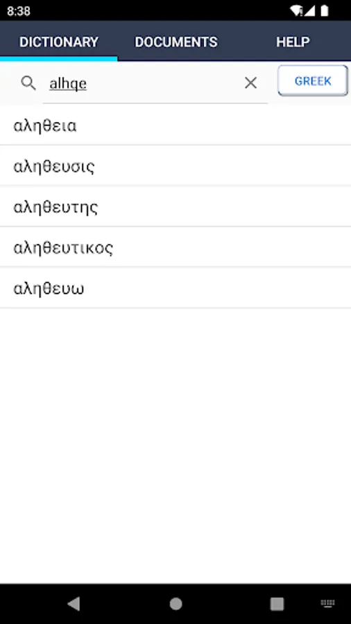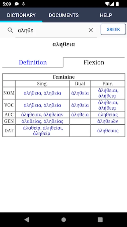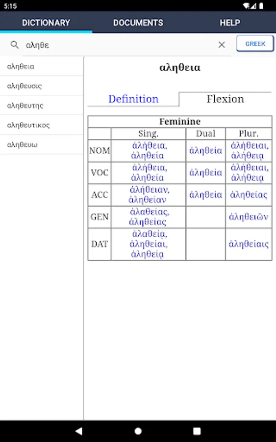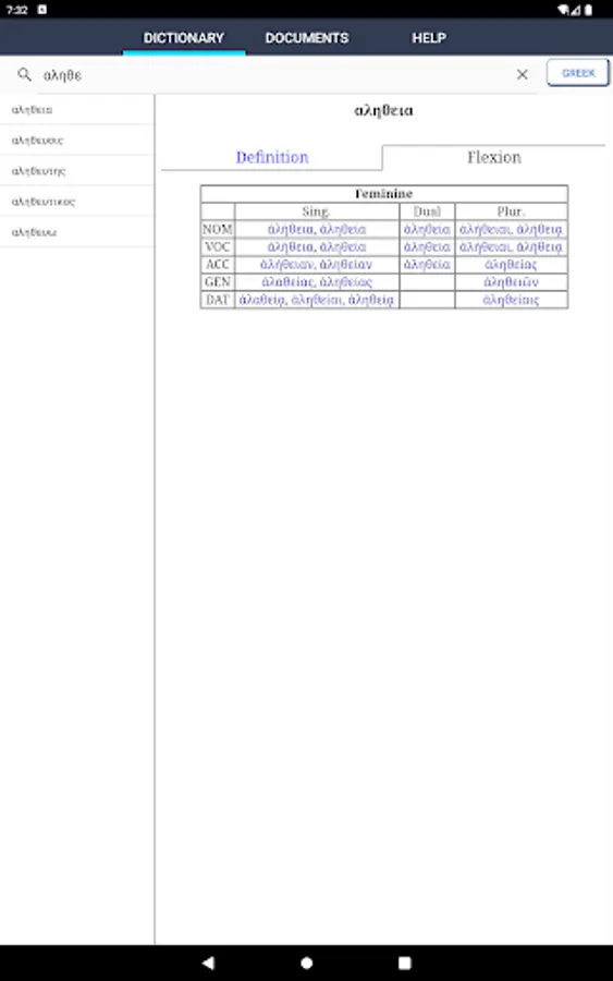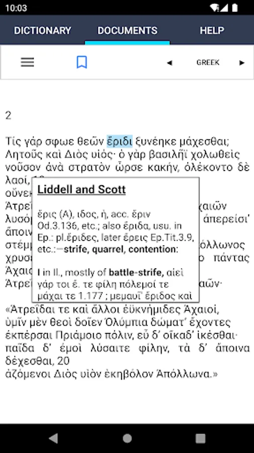 Document reader which allows to analyze inflected forms in the body of the text, and to search the corresponding entry in the database.