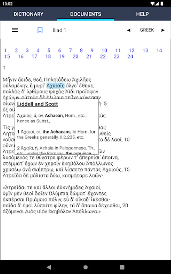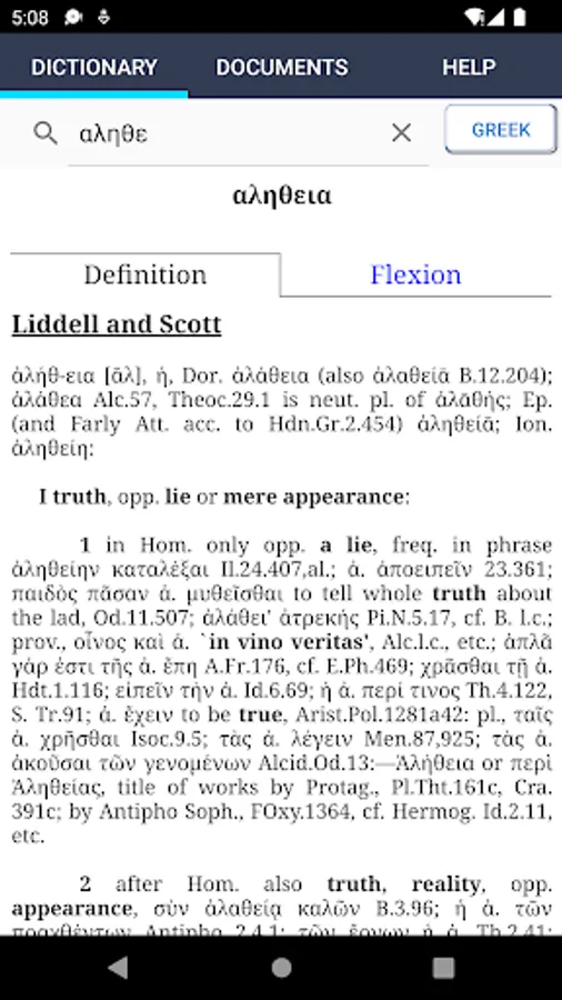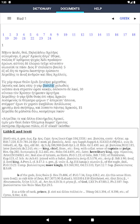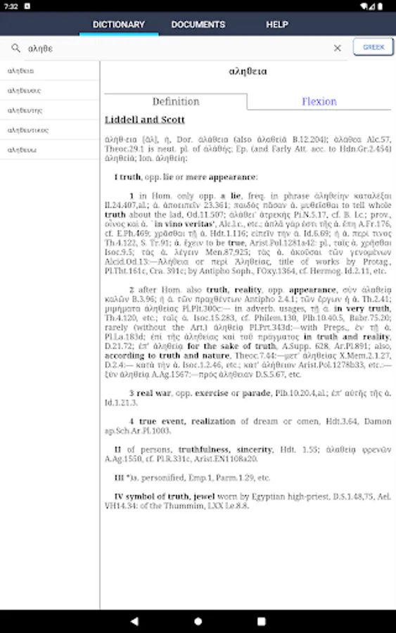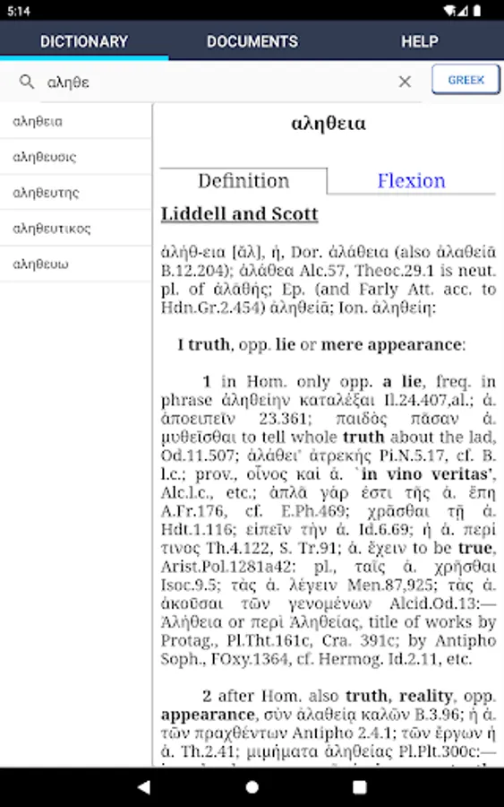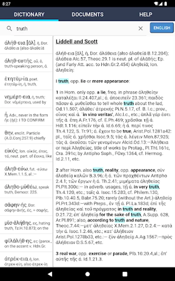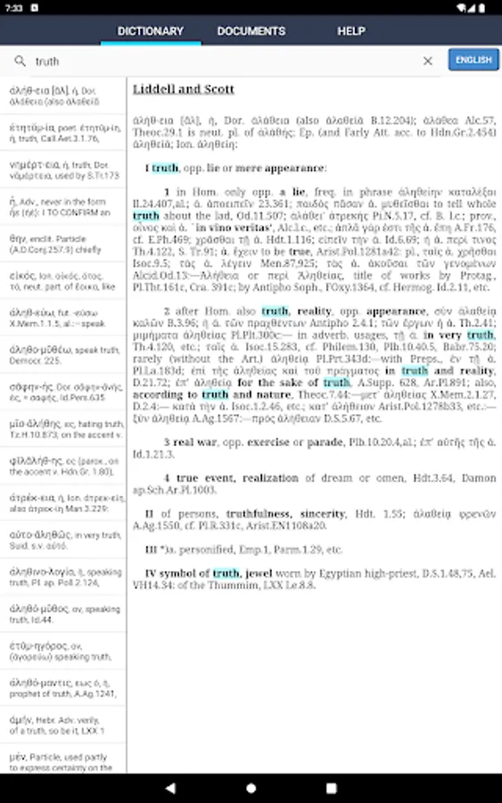 The complete Greek-English Lexicon by Henry George Liddell and Robert Scott (more than 116 000 entries).