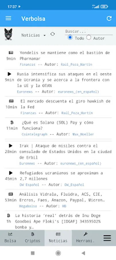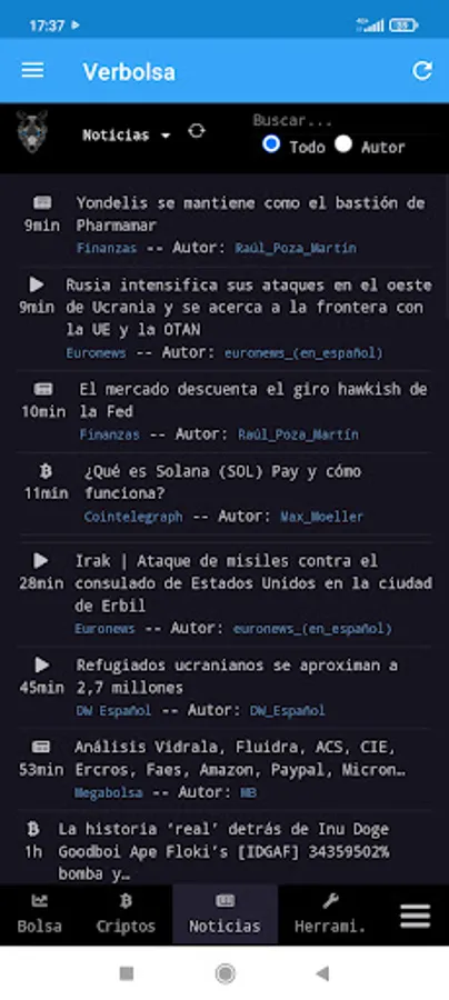 Financial and cryptocurrency news aggregator. It also gives us the price of shares, indices and crypto assets. You can consult the graphs of different world indices and actions.