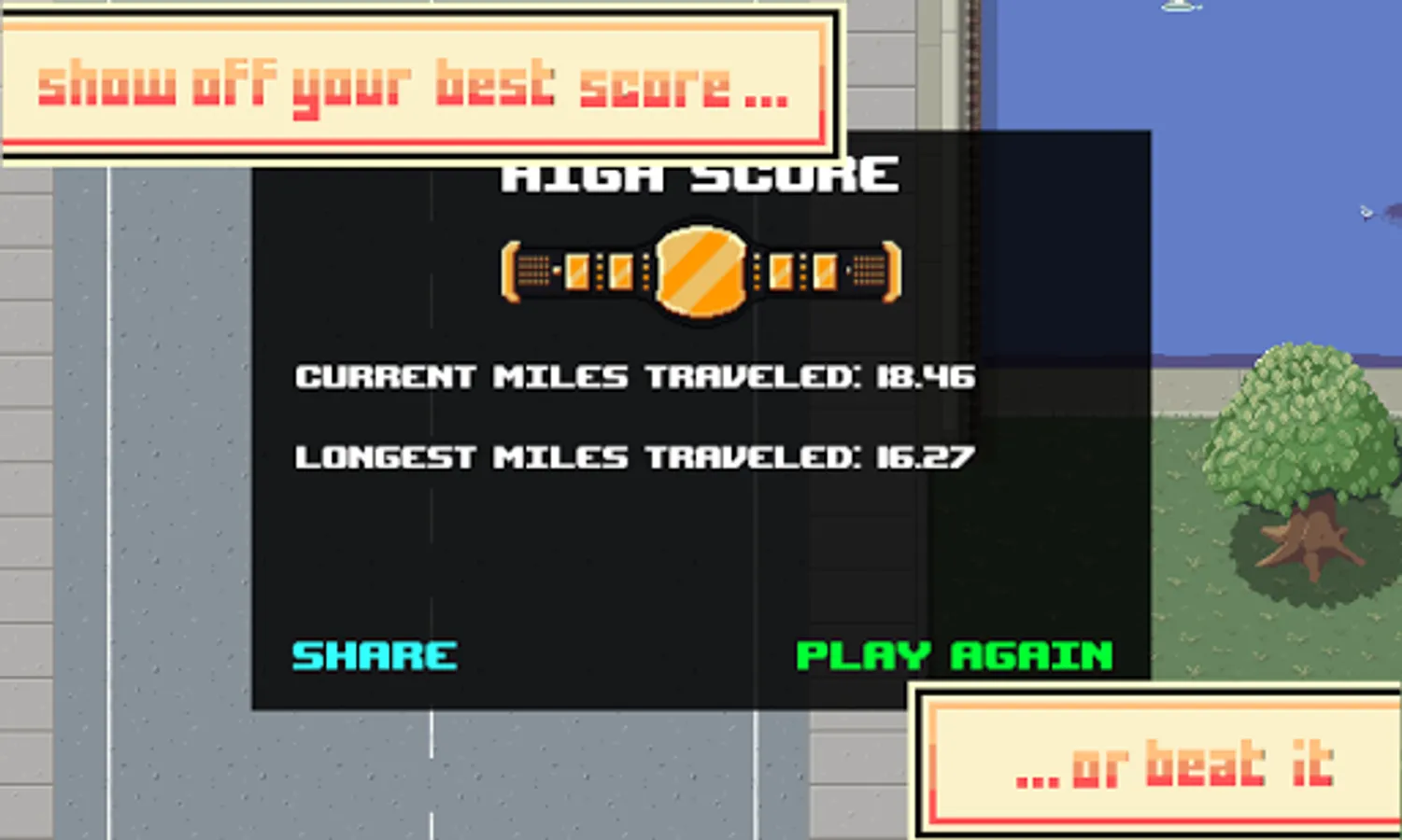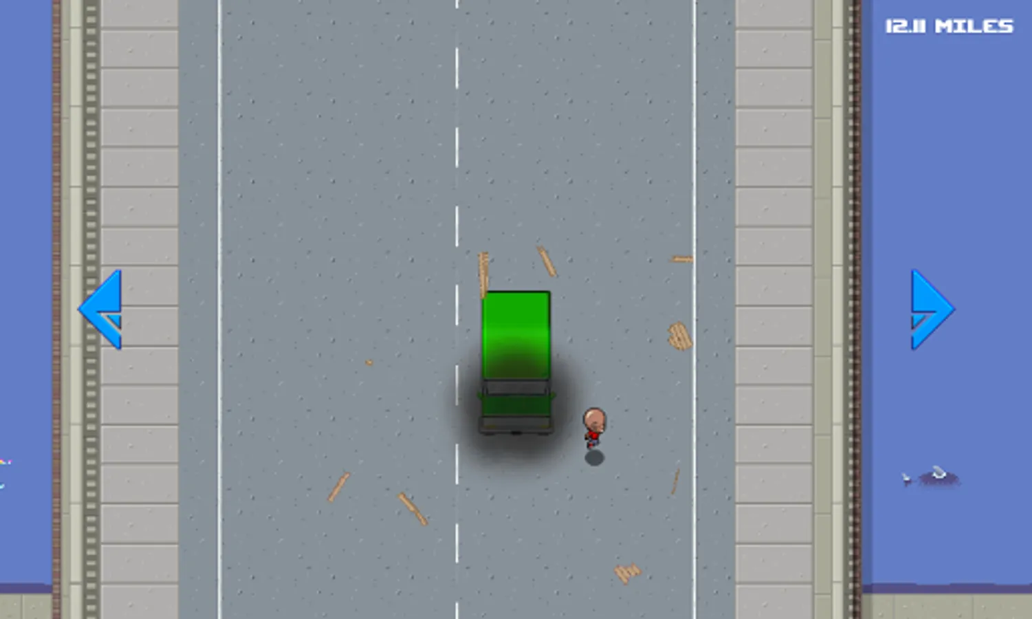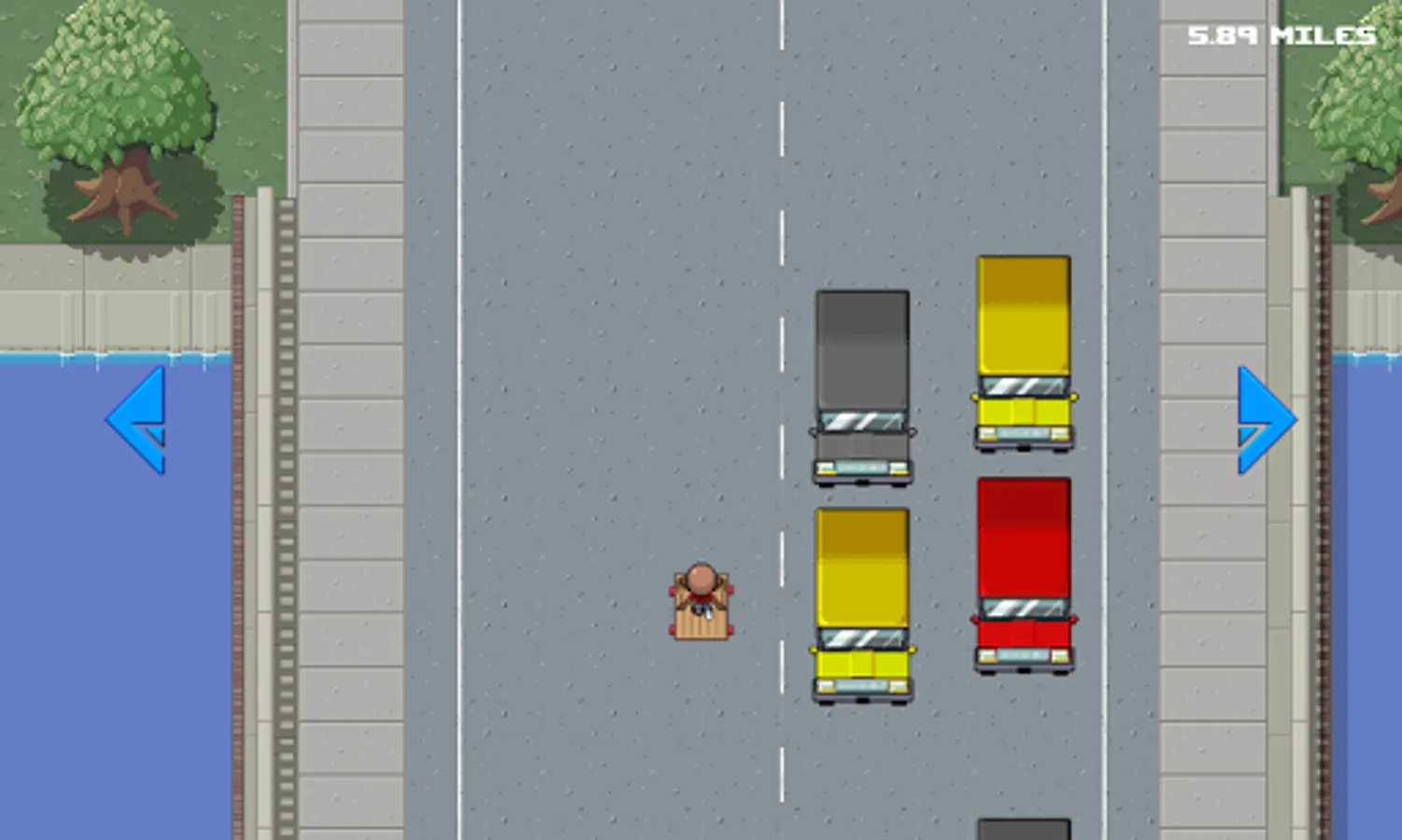 Summer Sled is a 2D infinite runner. The objective of the game is to dodge oncoming traffic by tapping the left or right buttons. Fight your way through traffic as an rebellious Bahamian child as you curve through Miami. Barge your way around this addictive infinite runner filled with bewildered drivers, level crossings, intersections and much more! Enjoy a laugh with randomized voices overs like a preppy kid or a self-absorbed adult. The game also includes an origin story explaining why a kid is riding a wooden sled down a one-way highway.