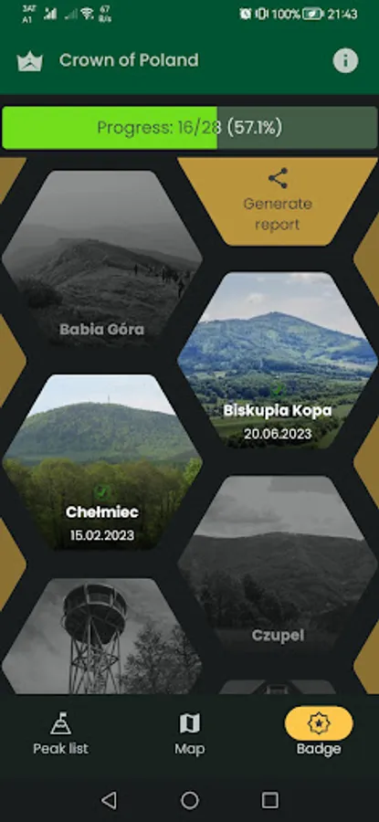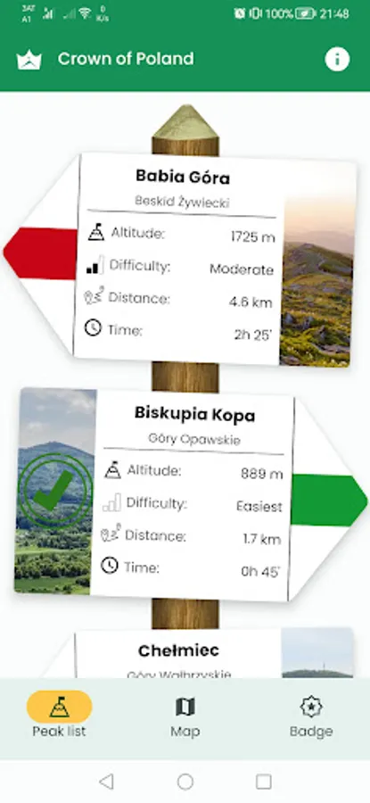 The mobile journal for conquering the 'Crown of Polish Mountains' is designed for enthusiasts who aim to conquer one of the most popular and prestigious Polish badges. It allows for easy tracking of progress in summit conquests, provides access to a compendium of knowledge about the mountains, enables sharing of achievements and earned badges, as well as provides information about parking areas, trails and their difficulties.
