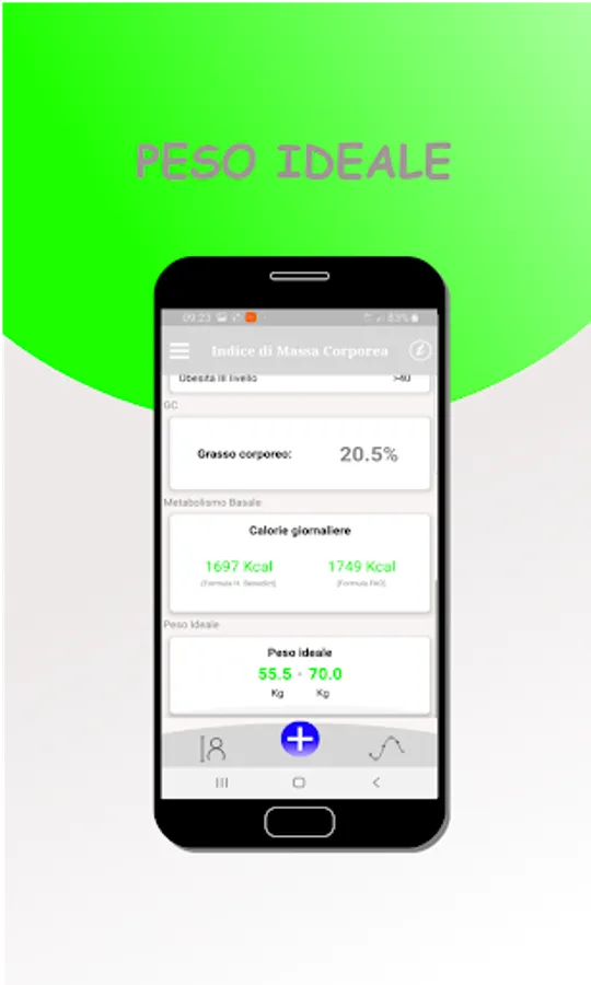 With this wonderful application, you can calculate the BMI, know the percentage of Body Fat, know your Ideal Weight and daily calories on the basis of two different formulas to calculate the Basal Metabolism.