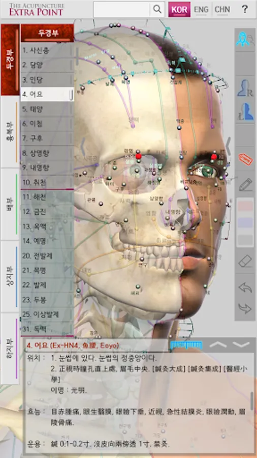 ‘The Acupuncture of Extra Point’ was created by integrating Extra Point from the past, and the newly discovered New Point together as one product. It allows for easy comparison because it expresses 14 Main Acupuncture Point Meridian and the Extra Acupuncture Point together in a male and female 3D model. Easily zoom in and out with multi-touch so you can see the exact location of The Acupuncture Point. It is recommended for people who want to see both 14 Main Acupuncture Point Meridian and the Extra Acupuncture Point at the same time. Contents include accurate location, based book, function and character (how to use). Released in Korean, Chinese and English, which allows it to be used across the world! With realistic skin, bone, and internal organs in 3D human body model, everything is distinguished by rich colors so it is very easy to see. It is based on The International Standard Acupuncture Points of WHO, WHO`s International Standard Terminologies on Traditional Medicine in The Western Pacific Region, The acupuncture textbooks of the university of Asian Medicine and 'Huangdi Neijing - Lingshu’. It is supervised by professors and Korean medical doctors from Korea Medical University. * 14 Main Acupuncture Point Meridian - 12 Main Acupuncture Point, Governor Vessel (GV) Acupuncture Point, Conception Vessel(CV) Acupuncture Point.- See The Meridian 2.0