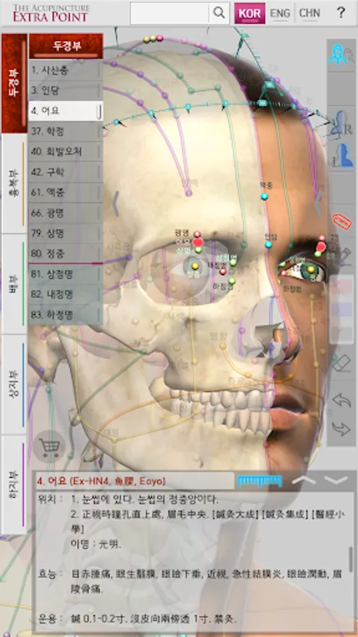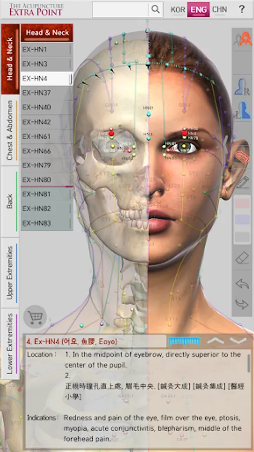 ‘The Acupuncture of Extra Point’ is easy to use because it displays The Extra Acupuncture Point on 3D human body model. As well, the Extra Acupuncture Point and 14 Main Acupuncture Point Meridians are displayed together with the accuracy, so you can easily compare.