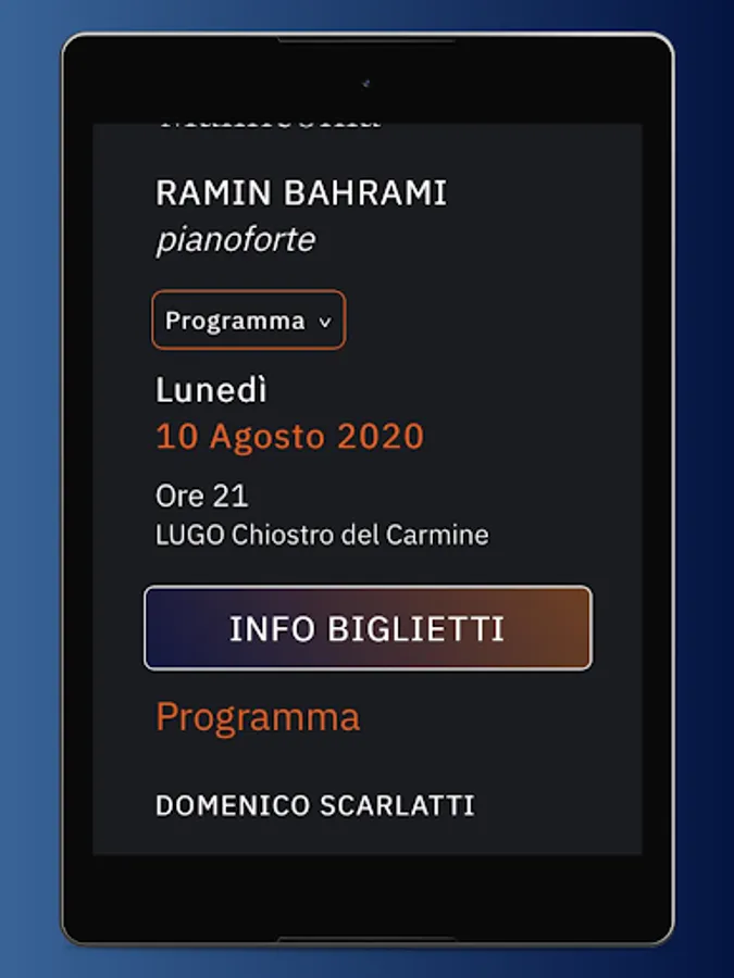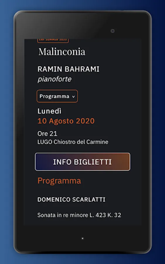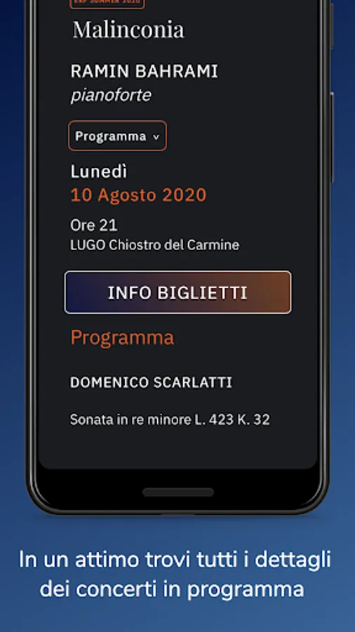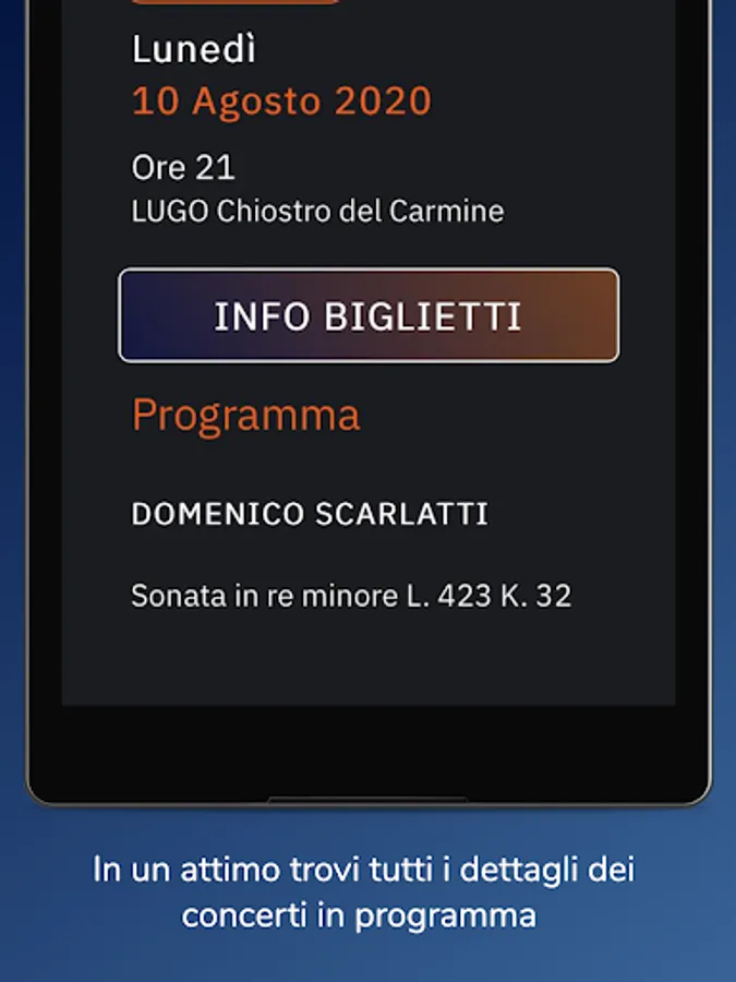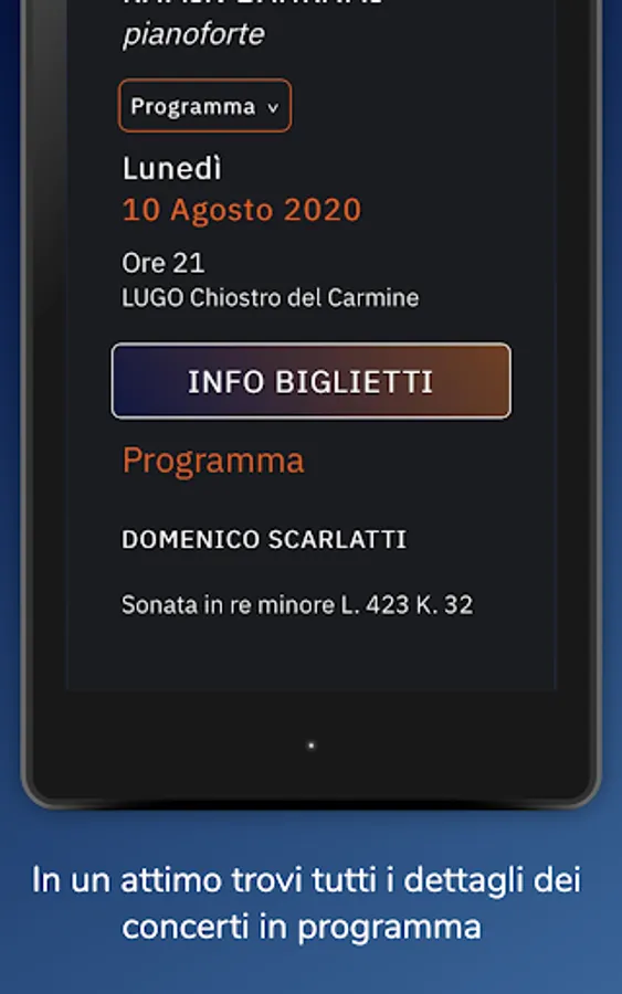 The simplified interface of the official mobile app allows you to always be updated with the latest news of the Emilia Romagna Festival seasons