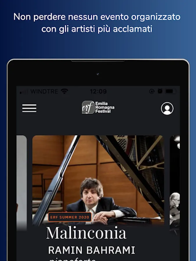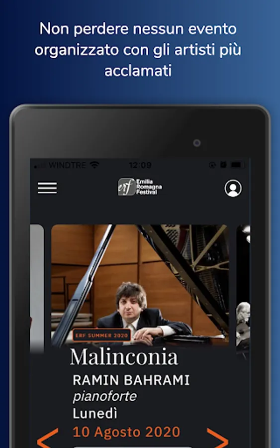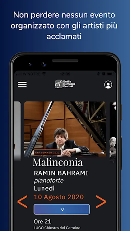 Consult and book events in an easy and intuitive way. During the show discover the detailed program and the curricula of the artists. Stay up to date on the exclusive events of Emilia Romagna Festival by participating in the ERF community