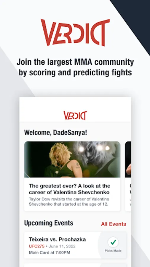 Join the largest MMA community on the planet. Verdict MMA is the #1 MMA platform and community for scoring, fight picks, and now real-money fantasy contests that we call Verdict Tournaments.